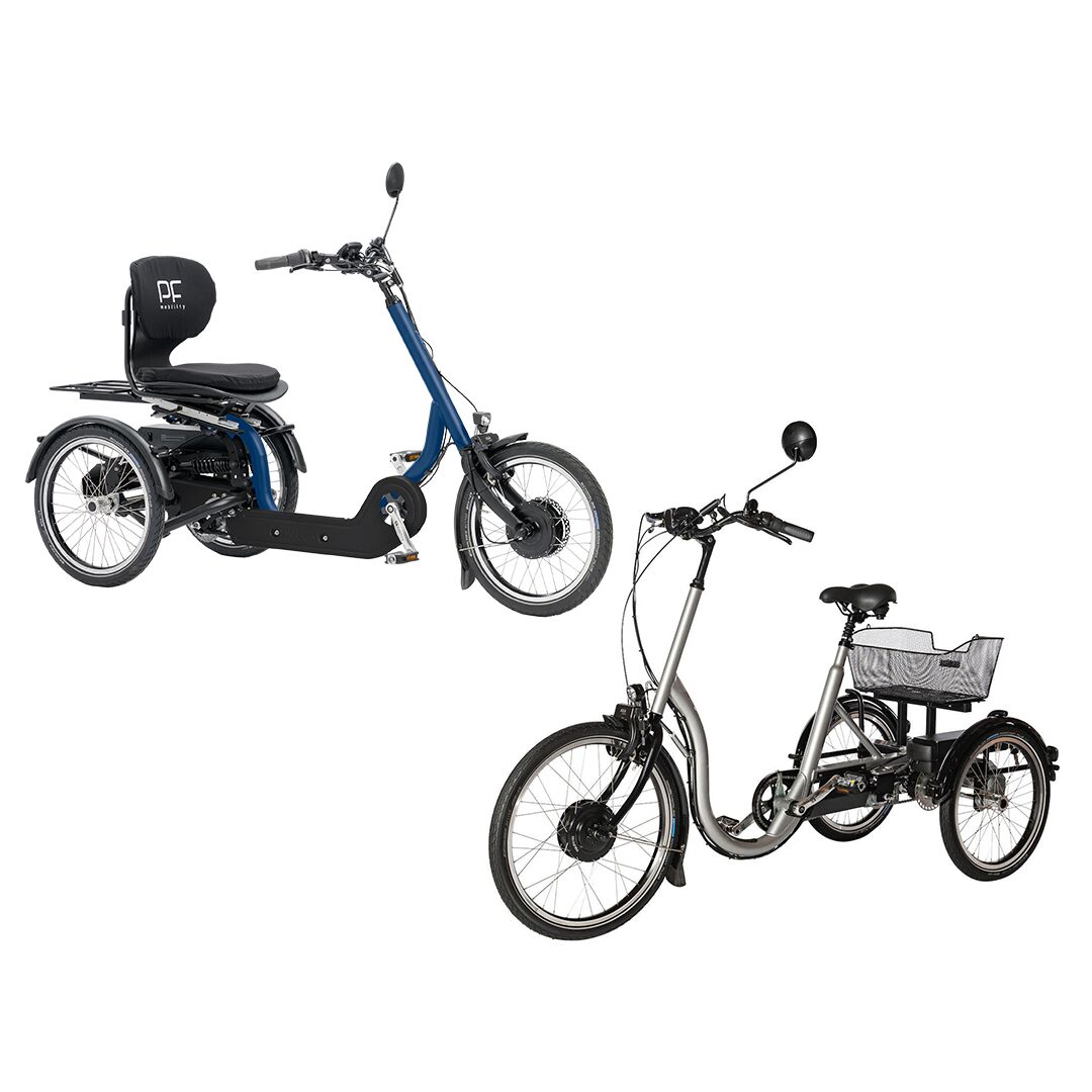 Mit einem Rad von PF mobility werden Sie auf dem Radweg rote Wangen bekommen und den Wind in den Haaren spüren. Wir bieten eine breite Auswahl von Dreirädern mit optionalem Hilfsmotor oder als Tandem-Versionen an.