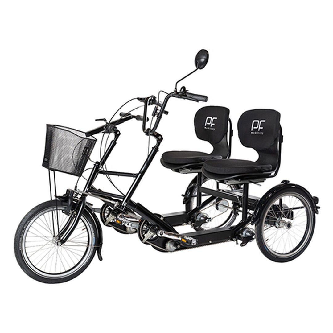 Gehen Sie auf Entdeckungsreise – zusammen mit einer anderen Person an Ihrer Seite. Die Tour gestaltet sich meistens gemütlicher, wenn man zu zweit in die Pedale treten und die Welt erkunden kann. Auf den Tandem-Dreirädern von PF mobility können Sie leicht aufsitzen. Unsere Tandem-Dreiräder liegen gut auf der Straße und sind natürlich leicht zu lenken – damit Sie sich stets sicher fühlen, ganz gleich, wer Ihr Beifahrer ist.